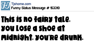 - # 193973 Im sorry ladies, but life is not a fairy tale, and If you lose your shoe after midnight it means, well, you’re drunk.