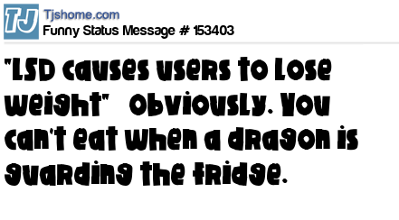 - # 138687 'LSD makes users lose weight' That makes sense, it's kinda hard to get to the fridge when there's a dragon guarding it.