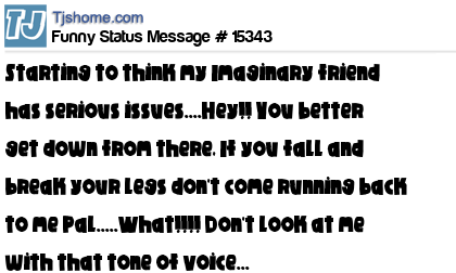 X Starting to think my Imaginary friend has serious issues....Hey!! You better get down from there, If you fall and break your legs don't come running back to me Pal.....What!!!! Don't look at me with that tone of voice...