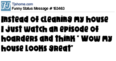 X says Instead of cleaning my house I just watch an episode of hoarders and think " Wow my house looks great"