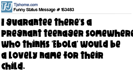X I guarantee there's a pregnant teenager somewhere who thinks 'Ebola' would be a lovely name for their child.