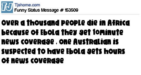 X says Over a thousand people die in Africa because of Ebola they get 10minute news coverage , one Australian is suspected to have Ebola gets hours of news coverage