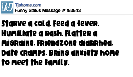 X Starve a cold. Feed a fever. Humiliate a rash. Flatter a migraine. Friendzone diarrhea. Date cramps. Bring anxiety home to meet the family.