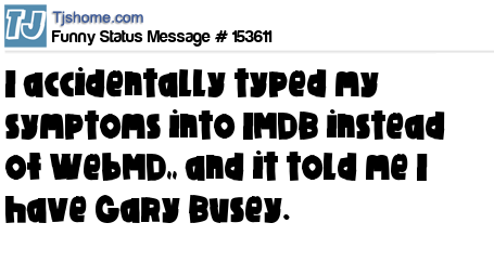- # 158391 I just accidentally typed my symptoms into IMDB instead of WebMD and it says I have Gary Busey.