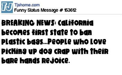X BREAKING NEWS: California becomes first state to ban plastic bags...People who love picking up dog crap with their bare hands rejoice.