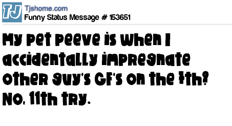 X says My pet peeve is when I accidentally impregnate other guy's GF's on the 7th? No, 11th try.