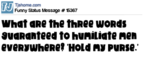 - # 19659 What are the three words guaranteed to humiliate men everywhere? 'Hold my purse.'