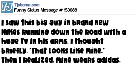 X says I saw this big guy in brand new Nikes running down the road with a huge TV in his arms. I thought briefly, "That looks like mine." Then I realized, mine wears adidas.