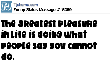 - # 15415 The greatest pleasure in life is doing what people say you cannot do. I just did 15 push ups. True story!
