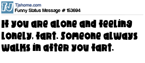 X says If you are alone and feeling lonely, fart. Someone always walks in after you fart.