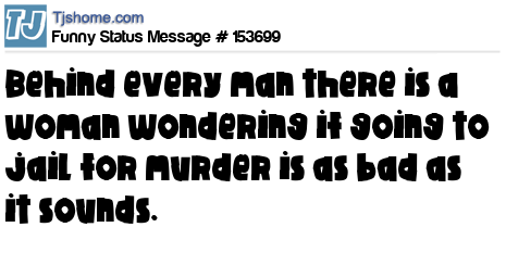 X says Behind every man there is a woman wondering if going to jail for murder is as bad as it sounds.