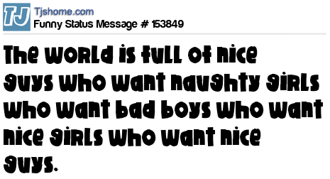 X says The world is full of nice guys who want naughty girls who want bad boys who want nice girls who want nice guys.