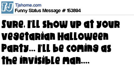 X says Sure, I'll show up at your vegetarian Halloween Party... I'll be coming as the invisible man....