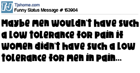 X says Maybe men wouldn't have such a low tolerance for pain if women didn't have such a low tolerance for men in pain...