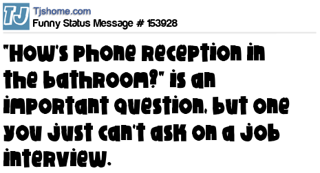 X says "How's phone reception in the bathroom?" is an important question, but one you just can't ask on a job interview.