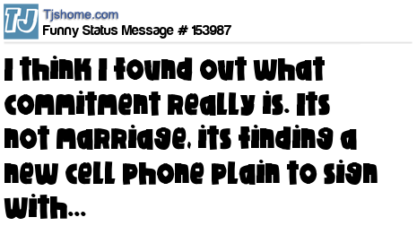 X I think I found out what commitment really is. Its not marriage, its finding a new cell phone plain to sign with...