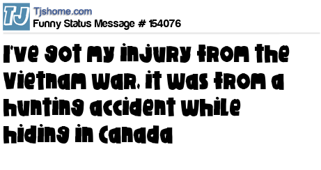 X I've got my injury from the Vietnam war, it was from a hunting accident while hiding in Canada