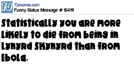 X says Statistically you are more likely to die from being in Lynyrd Skynyrd than from Ebola.
