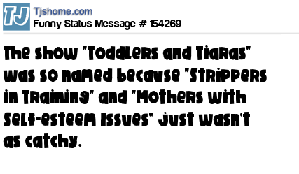 X says The show "Toddlers and Tiaras" was so named because "Strippers in Training" and "Mothers with Self-esteem Issues" just wasn't as catchy.
