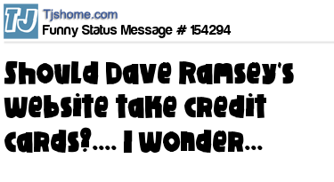 X says Should Dave Ramsey's website take credit cards?.... I wonder...