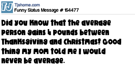 X  Did you know that the average person gains 4 pounds between Thanksgiving and Christmas? Good thing my mom told me I would never be average.