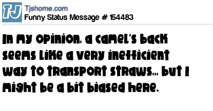 X  in my opinion, a camel's back seems like a very inefficient way to transport straws,,, but I might be a bit biased here.