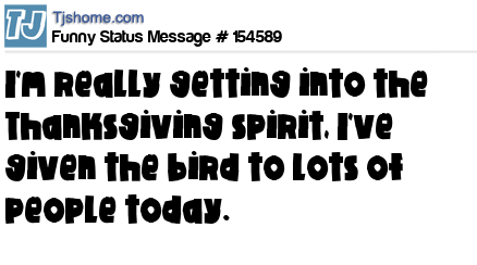 - # 37563 Everyday is like Thanksgiving for me... people always give me "The Bird" and tell me to "Stuff It!"