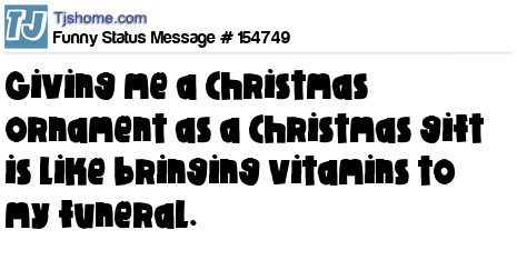 X says Giving me a Christmas ornament as a Christmas gift is like bringing vitamins to my funeral.