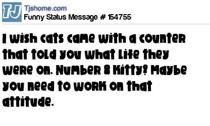 X says I wish cats came with a counter that told you what life they were on. Number 8 kitty? Maybe you need to work on that attitude.