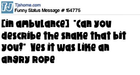 X says [in ambulance] "Can you describe the snake that bit you?" Yes it was like an angry rope