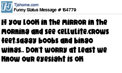 X says If you look in the mirror in the morning and see cellulite,crows feet,saggy boobs and bingo wings.. Don't worry at least we know our eyesight is ok