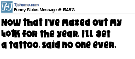 X Now that I've maxed out my 401k for the year, I'll get a tattoo, said no one ever.