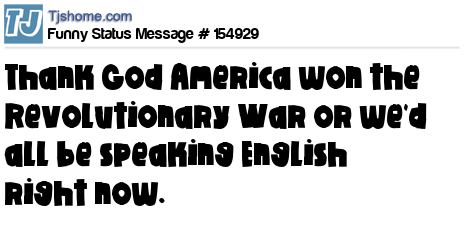 X says Thank God America won the Revolutionary War or we'd all be speaking English right now.
