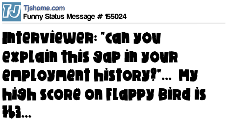 X Interviewer: "can you explain this gap in your employment history?"... My high score on Flappy Bird is 763...