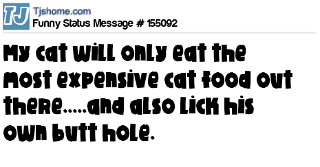 X says My cat will only eat the most expensive cat food out there.....and also lick his own butt hole.