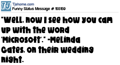 - # 173369 "Well, Bill, now I see how you came up with the word 'Microsoft'." -Melinda Gates, on their wedding night.