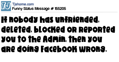 X says If nobody has unfriended, deleted, blocked or reported you to the Admin, then you are doing Facebook wrong.