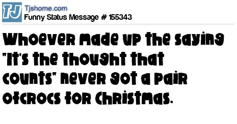 X says Whoever made up the saying "It's the thought that counts" never got a pair ofcrocs for Christmas.