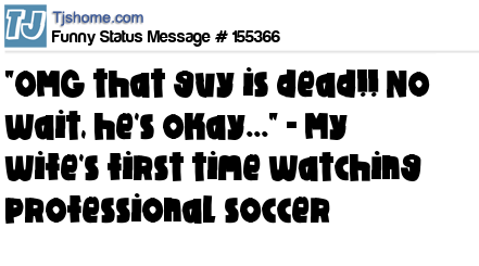 X  "OMG that guy is dead!! No wait, he's okay..." - My wife's first time watching professional soccer