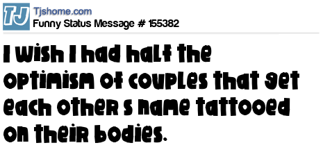 X says I wish I had half the optimism of couples that get each other’s name tattooed on their bodies.