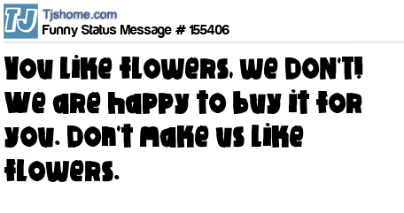 X says You like flowers, we DON'T! We are happy to buy it for you. Don't make us like flowers.
