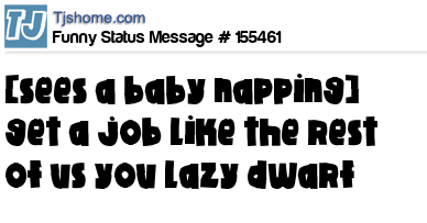 X says [sees a baby napping] get a job like the rest of us you lazy dwarf