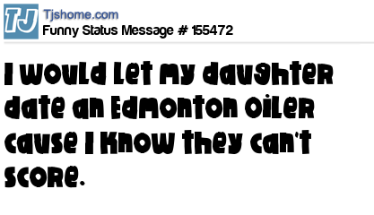 X says I would let my daughter date an Edmonton Oiler cause I know they can't score.