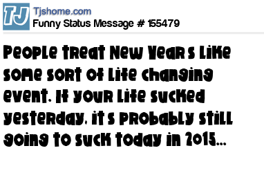 X says People treat New Year’s like some sort of life changing event. If your life sucked yesterday, it’s probably still going to suck today in 2015...