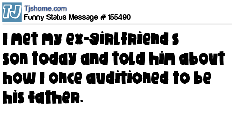 - # 143233 Yesterday I met my ex-girlfriend’s son and told him about how I once auditioned to be his father.