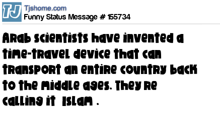 X says Arab scientists have invented a time-travel device that can transport an entire country back to the middle ages. They’re calling it “Islam”.