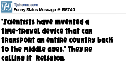X "Scientists have invented a time-travel device that can transport an entire country back to the middle ages." They’re calling it “Religion.”