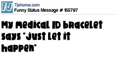 - # 71614 Just bought me a medical alert bracelet that says... "probably just sh!tfaced"