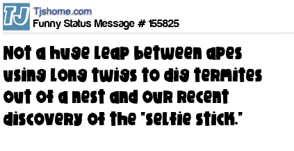 X says Not a huge leap between apes using long twigs to dig termites out of a nest and our recent discovery of the "selfie stick."