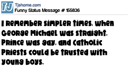 X I remember simpler times, when George Michael was straight, Prince was gay, and Catholic Priests could be trusted with young boys.